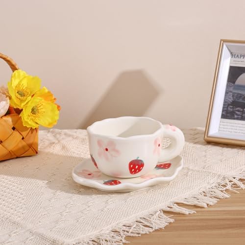 View full detailsStart Your Day with a Smile – Mugology Strawberry & Flower Coffee Cup! Brighten your mornings with this adorable 6 oz ceramic coffee cup and sa...